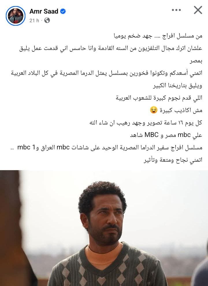 Home » الفنان المصري عمرو سعد يعتزل التلفزيون