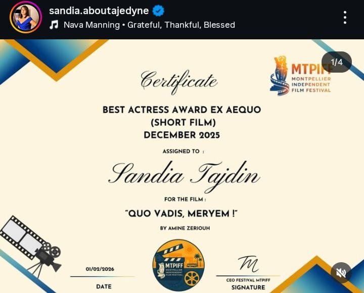 من فرنسا: الفنانة ساندية تاج الدين تتوج بجائزة أحسن ممثلة