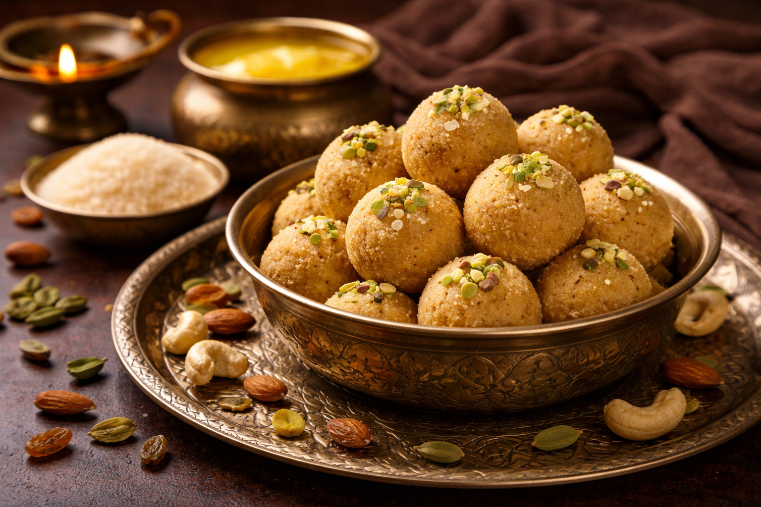 تُعدّ حلوى اللادو من أشهر الحلويات التقليدية في المطبخ الهندي، وتُحضَّر غالبًا في المناسبات العائلية والأعياد. تمتاز بقوامها الناعم وطعمها الغني، وتعتمد على مكونات بسيطة متوفرة، مع نكهة دافئة من السمن والتوابل الخفيفة.