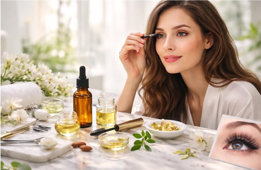 تساعد بعض الزيوت الطبيعية على تغذية بصيلات الرموش وتحسين مظهرها مع الاستمرار في الاستخدام.