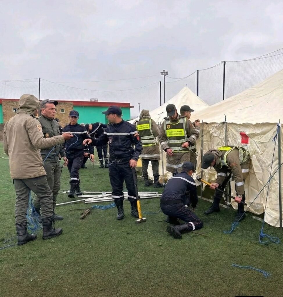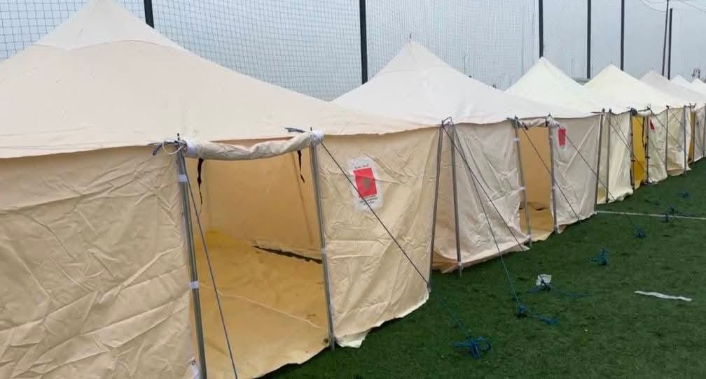 وبتنسيق بين السلطات والجيش الملكي بالقصر الكبير يتم تجهيز الخيام لإيواء المتضررين من آثار الفيضانات.