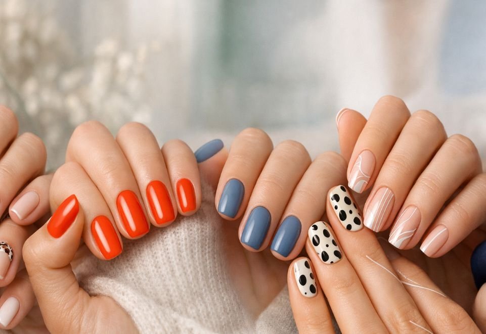 يبقى الأحمر حاضرًا، لكن بنسخة أكثر إشراقًا تميل إلى البرتقالي. هذا التدرج يمنح اليدين حيوية ويكسر صرامة الأحمر الكلاسيكي. يُعد خيارًا مناسبًا لمن يرغبن في لون لافت دون أن يبدو تقليديًا أو متكررًا.