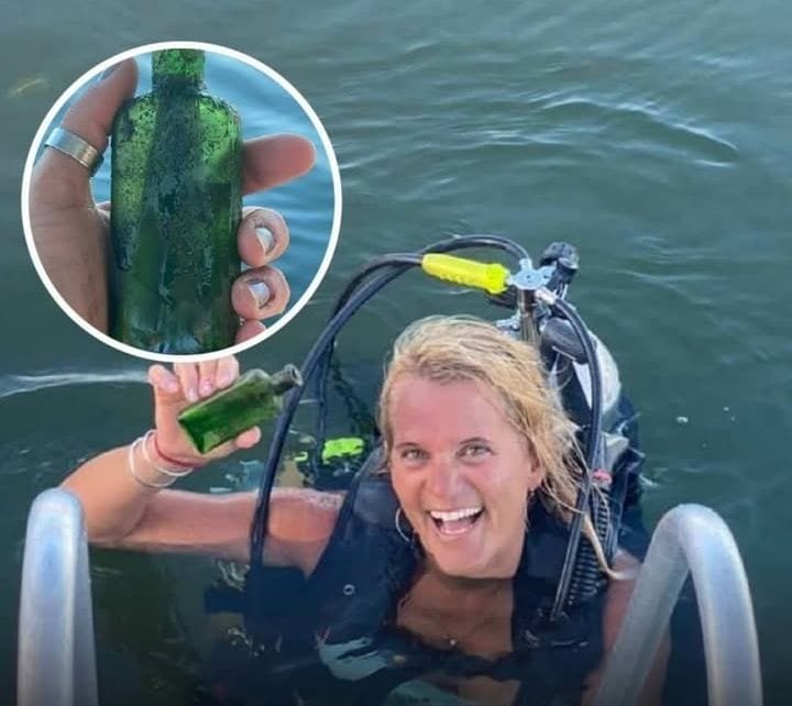 وكانت جنيفر التي تدير شركة جولات بالقوارب، تستعد لتنظيف قاربها، حين لفت لنتباهها شيء غريب باللون الأخضر تحت سطح الماء، ليدفعها فضولها لالتقاط زجاجة.