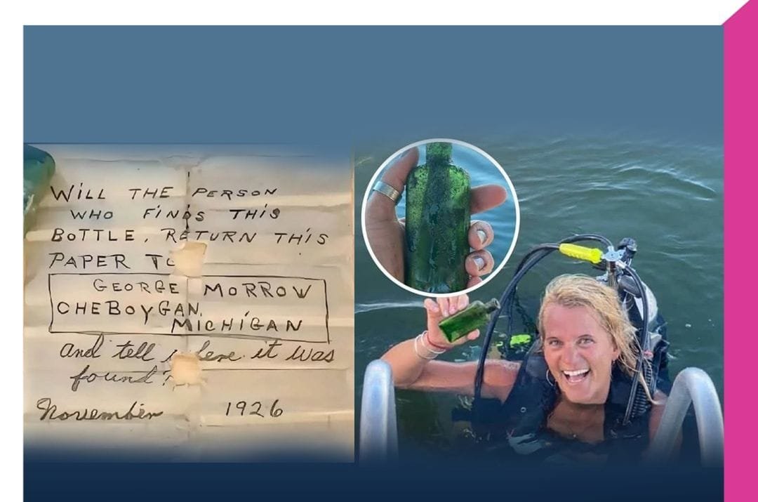 عثرت سيدة تدعى جنيفر دووكر على رسالة بداخل قنينة تبلغ من العمر 99 عاما وذلك أثناء استعداداها لرحلة غوص كما عهدت كل يوم بحكم عملها كمدربة غوص.