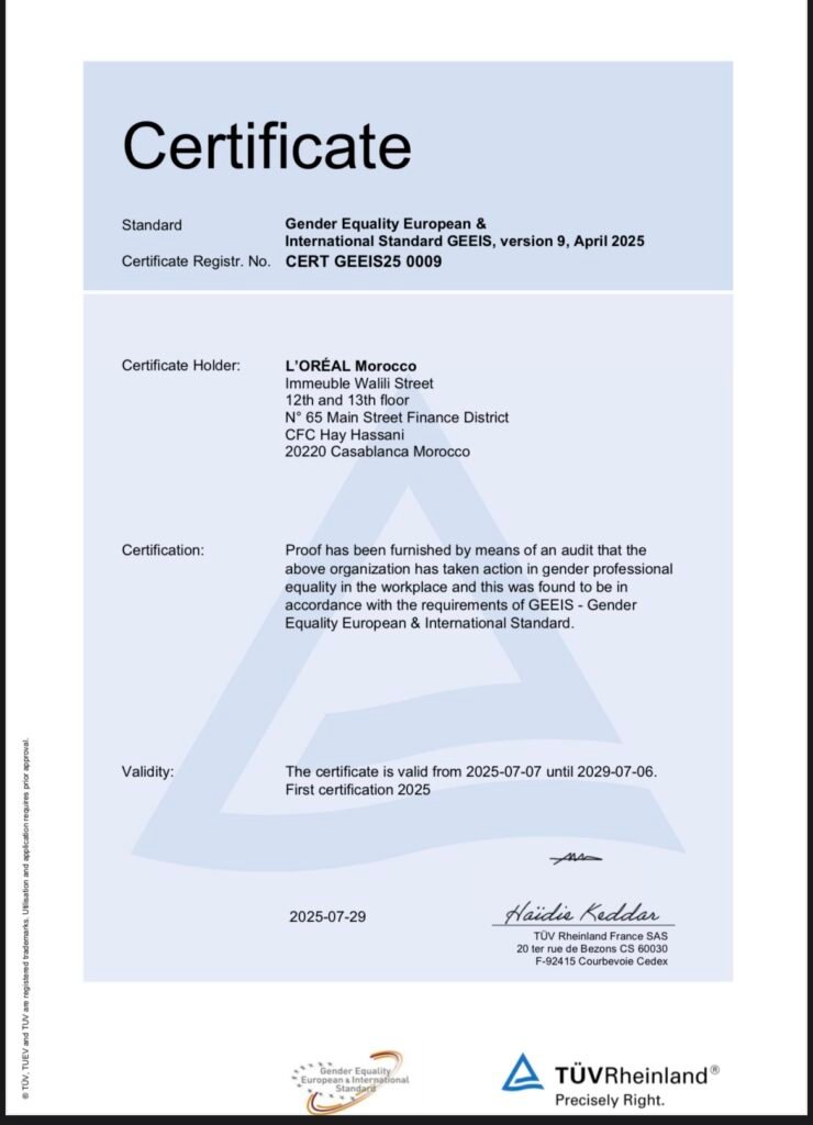 لوريال المغرب تنال شهادة GEEIS وتكرّس ريادتها في مجالات المساواة والتنوع والإدماج