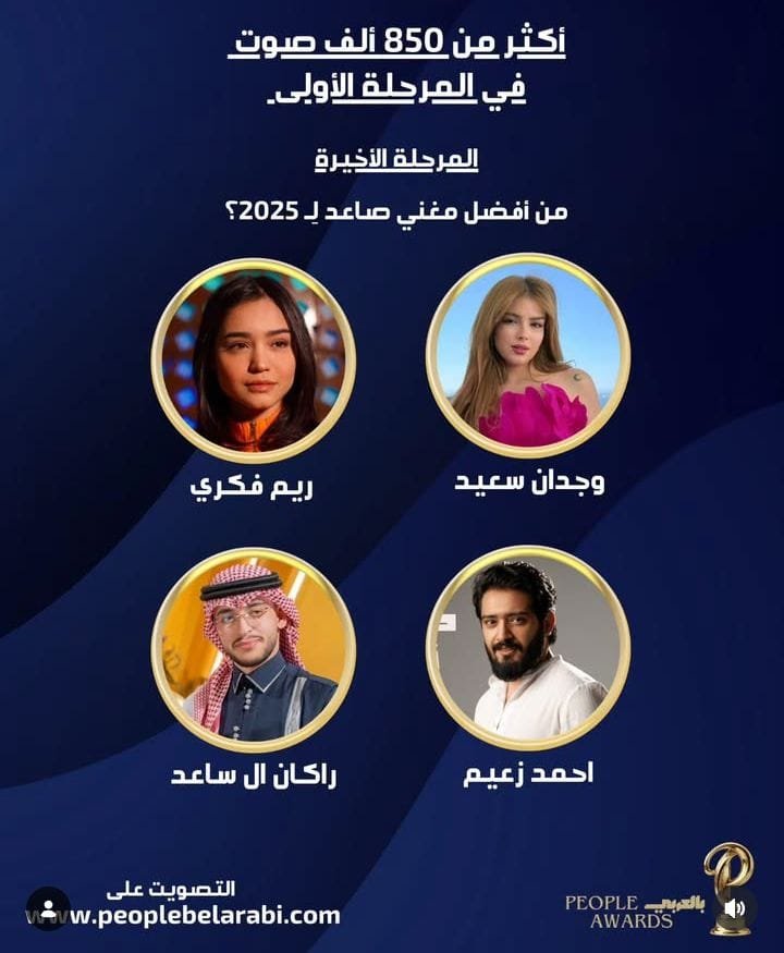 وتأهلت الفنانتين المغربيتين في المسابقة، إلى جانب راكان ال ساعد وأحمد الزعيم، إلى المرحلة الأخيرة لأفضل مغني صاعد للعام 2025. حسب ما أعلنت عنه المنصة المظمة للمنافسة وعلقت على حسابها الرسمي إنستغرام :” شكرا لكم على 850 ألف صوت في المرحلة الأولى” معلنة عن انطلاق المرحلة النهائية لفئة أفضل مطرب عربي للعام 2025.