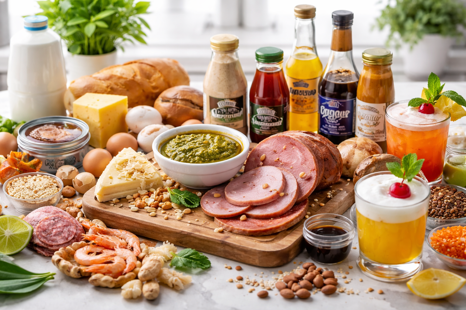 بعض الأطعمة الجاهزة أو السندويشات التجارية قد تحتوي على إضافات غير معروفة للزبون، مثل مكسرات أو مشتقات الحليب أو الصويا ضمن مكونات مصنّعة.