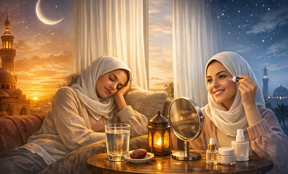 مع الساعات الأولى للصيام، يبدأ الجسم مرحلة تكيّف شاملة مع نظام جديد في النوم والتغذية. التحدي في اليوم الأول لا يرتبط فقط بالعطش، بل بتأثير اضطراب الإيقاع البيولوجي على البشرة. تغيير مواعيد النوم ووجبات الطعام ينعكس سريعًا على النضارة، وقد يظهر على شكل شحوب أو إجهاد.